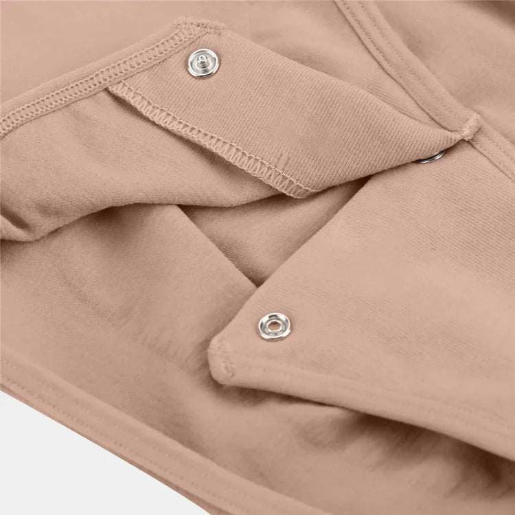 Con cierres de botón a presión en la entrepierna y breteles ajustables, este body asegura libertad de movimiento y comodidad continua.
